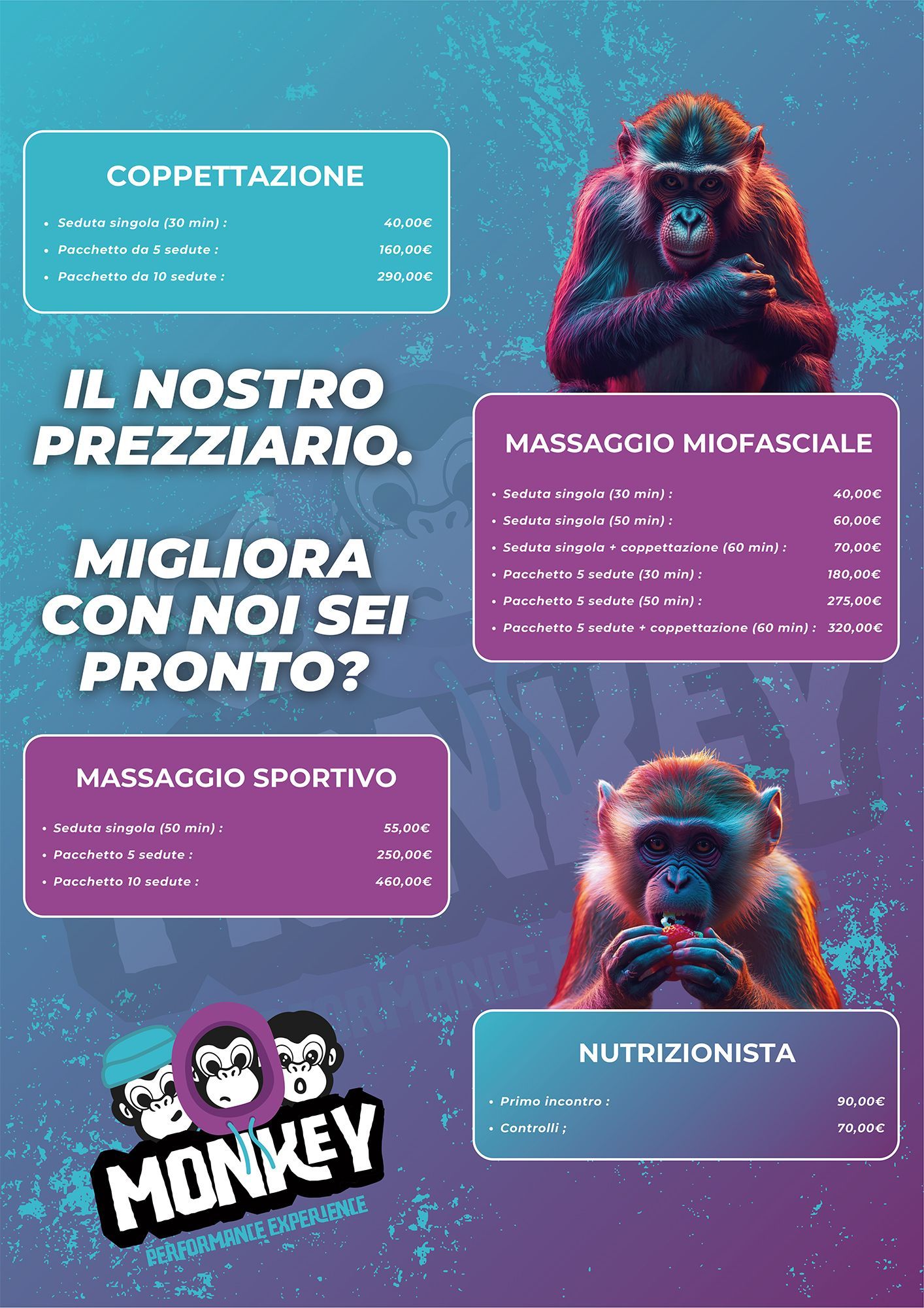 Gli orari e abbonamenti di Monkey Performance Experience sono pensati per offrire un’organizzazione semplice, flessibile e facilmente integrabile nella routine quotidiana, permettendo a ogni persona di programmare il proprio percorso di allenamento in modo consapevole. La struttura propone fasce mattutine, pomeridiane e serali per adattarsi a esigenze diverse, garantendo continuità delle attività e accesso costante alle sessioni. Le formule di abbonamento, chiare e personalizzabili, rispondono alle necessità sia di chi desidera una frequenza regolare sia di chi preferisce un approccio più libero, offrendo soluzioni calibrate in base agli obiettivi e alla durata del percorso. Grazie agli strumenti digitali dedicati, è possibile consultare in autonomia disponibilità e programmazione, semplificando la gestione della propria presenza e mantenendo sempre sotto controllo il progresso del percorso.